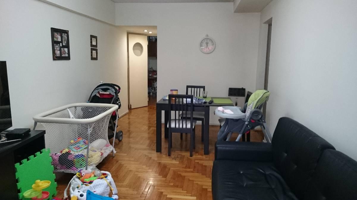 Excelente departamento 4º piso al frente con balcón y patio, super luminoso, living comedor con pisos de parquet y dormitorio con placard al frente, escritorio o segundo dormitorio sin placard con vista al patio, baño mas toilette de recepción, amplia cocina equipada, patio con lavadero y techo corredizo de policarbonato. Servicios individuales. Agua caliente por calefón y calefacción tiro balanceado. Aire acondicionado. Puerta de entrada blindada Pentágono.
