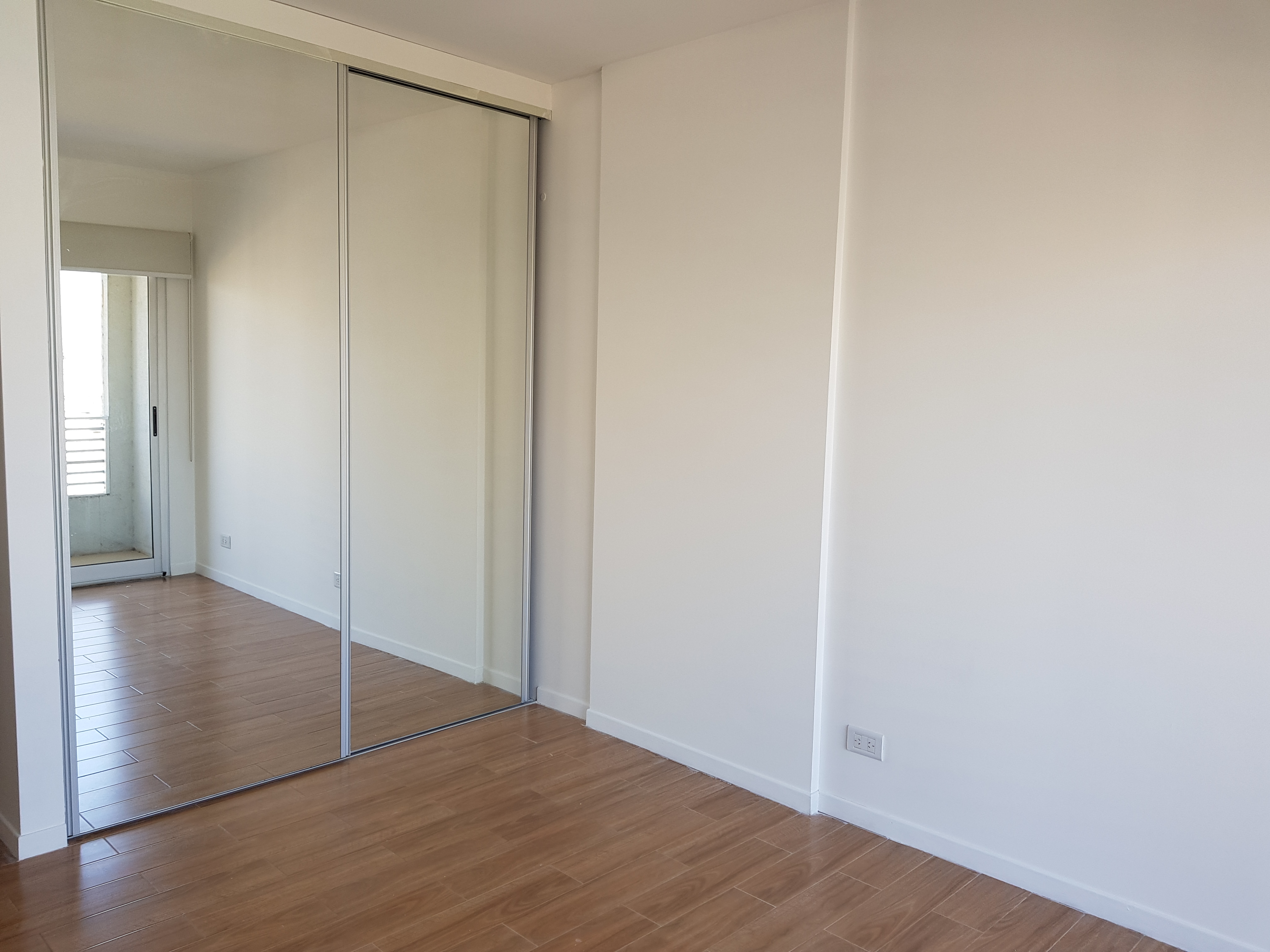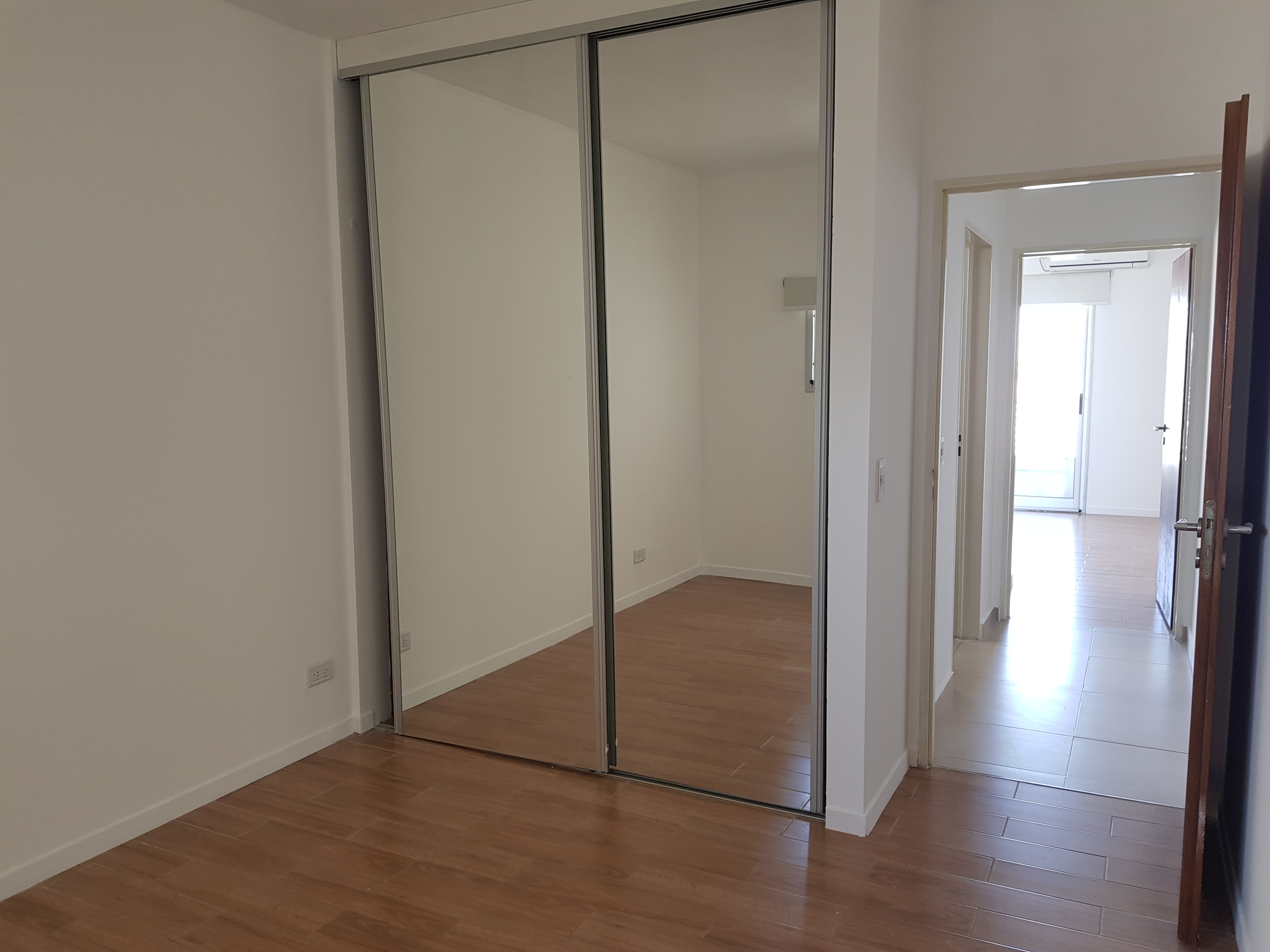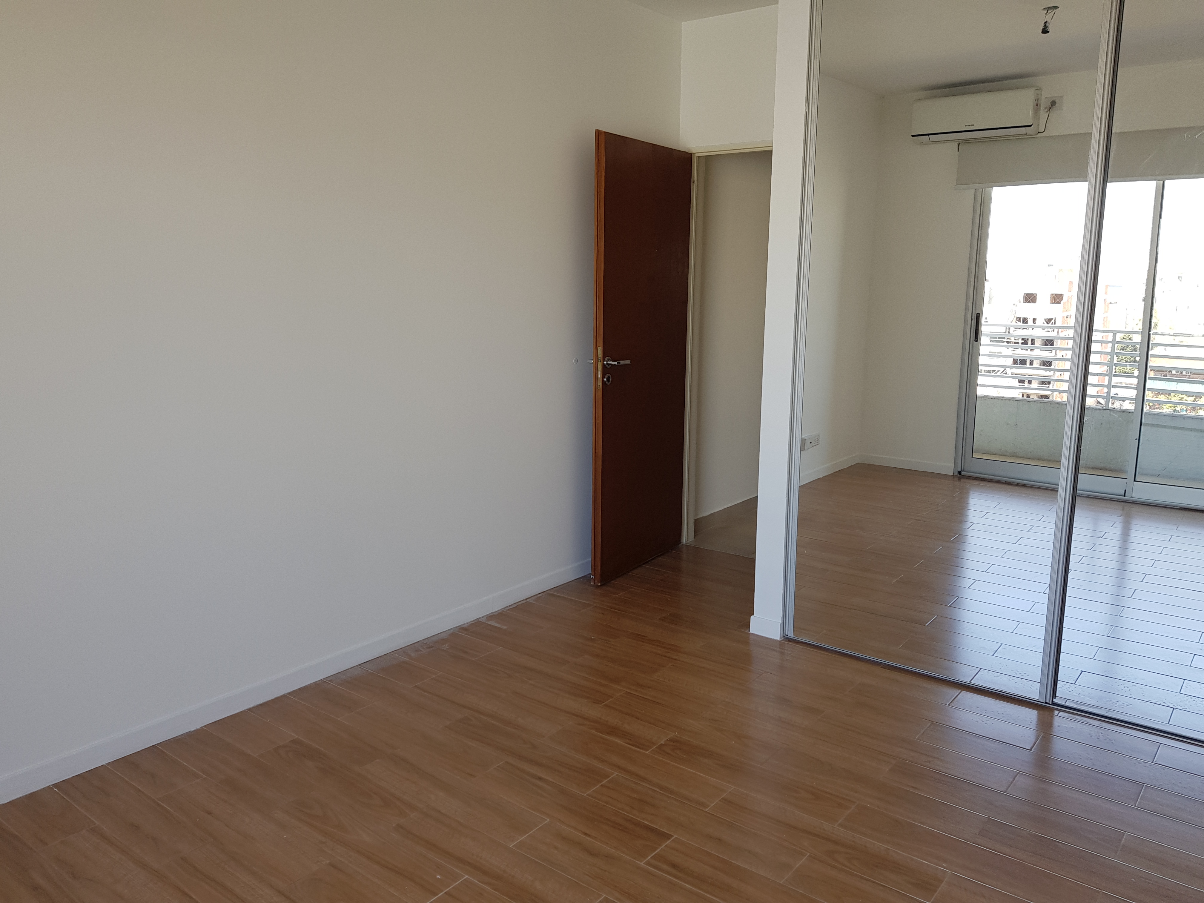 Dormitorio principal con placares espejados y salida a balcón.