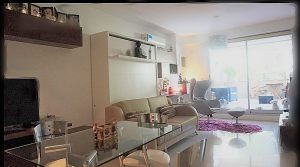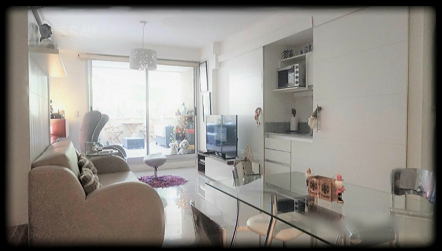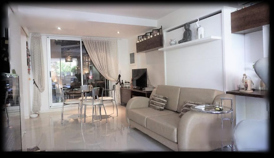 Amplio espacio que se aprovechó con un placard con paneles espejados de seis metros y medio junto a un living íntimo y escritorio (anteriormente era el patio que daba al aire luz, al cual se le realizó un cerramiento aprovechando los metros en su totalidad)