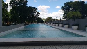 | Amenities | Piscina olímpica y solárium y climatizada in door, gym, SPA con snack bar y sectores de tratamiento individuales, sauna, baño turco, baño finlandes, ducha escosesa, hidromasaje, steam box, boxes de masajes (aromaterapia- osteoterapia-reflexología) y peluquería. Además posee SUM para 300 personas con sector de juegos para niños, cocina y toilettes, laundry y lavadero de mascotas. Cancha de tenis. Guardería de niños, un micro-cine, cocheras de cortesía para visitantes, sector de lavado y mecánica ligera, y una sala para choferes. |