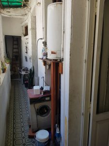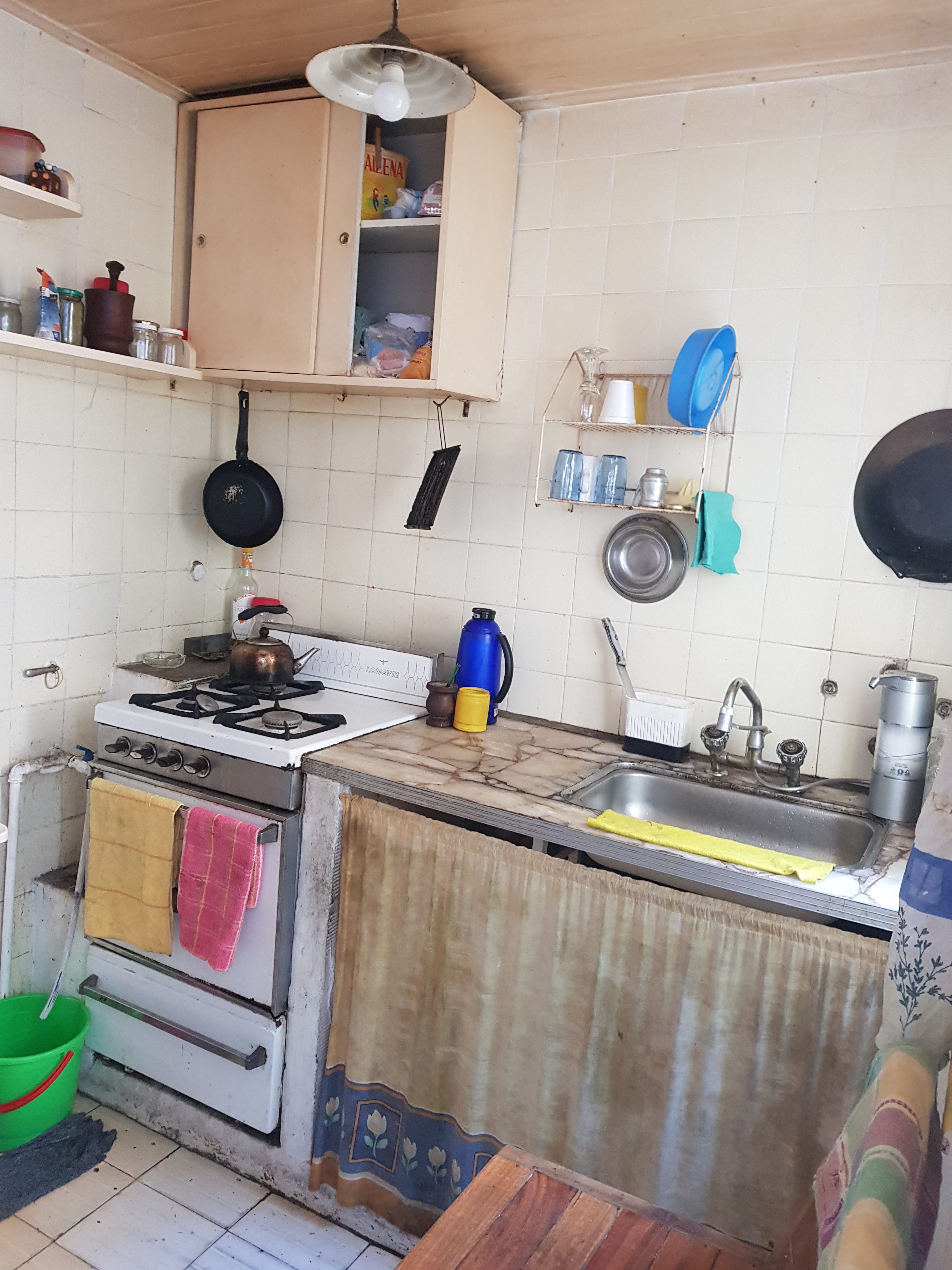 Baño con ducha y cocina a reciclar